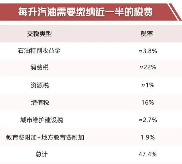 我国的油价为什么这么高,其中的税费占了很大的原因,汽油中包含石油特别收益金、消费税、资源税、增值税、城市维护建设费、教育费,六种税费相加合计占到了47.4%,这其中还没算两桶油的利润,因此国内的汽油价格相比全球有些国家才会显得这么高,税额中就包含有原来的“养路费”。