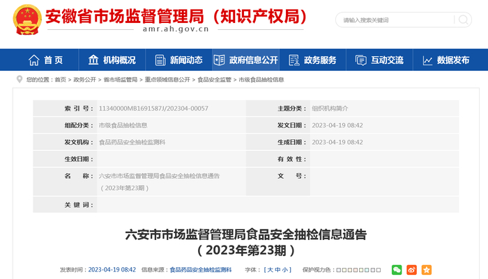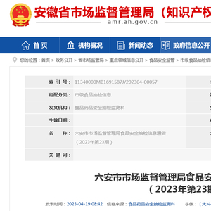 中国质量新闻网讯 近日,安徽省六安市市场监督管理局发布食品安全抽检信息通告(2023年第23期)。