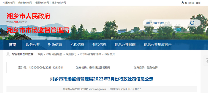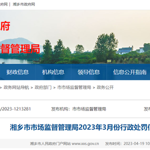 湖南省湘乡市市场监督管理局2023年3月份行政处罚信息公示