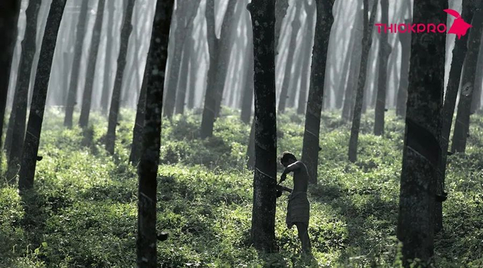 每天天不亮,工人们就得为此,全副武装地往橡胶林深处走去,直到割出乳白纯洁、颗粒细腻的上品。