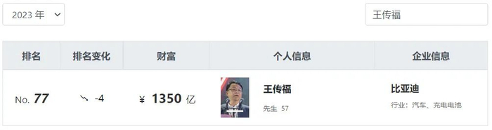 来源:夏佐全个人微信朋友圈夏佐全在微信朋友圈介绍:“王总在去参加上海车展的地铁上,戴参观牌的人是比亚迪的技术研究院院长!”王传福乘坐地铁参加2023年上海车展,外界评论原因可能是,车展期间交通拥堵,乘坐地铁反而能更快达到展会地点。3月23日,《胡润全球富豪榜》发布,截至1月16日,王传福以1350亿元财富排名全球富豪榜第77位。