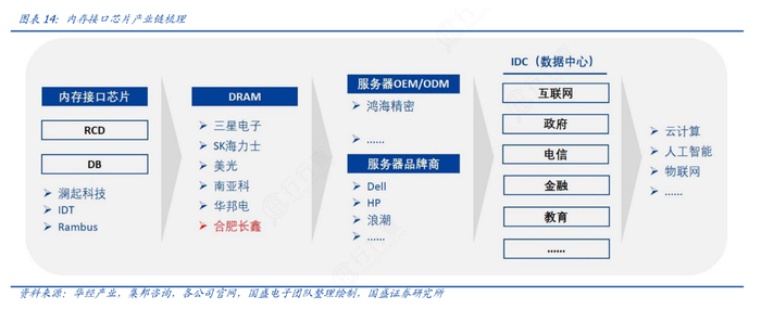梳理产业链可以发现,内存接口芯片直接面向DRAM市场,通过服务器应用于数据中心建设,间接地服务于终端云计算、人工智能等领域。