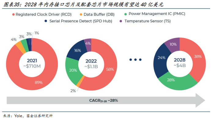 国金证券在3月24日的研报中表示,根据Yole的数据,2022年内存接口芯片及配套芯片市场规模达11亿美元,2028年市场规模有望成长到40亿美元,2021-2028年CAGR达28%。