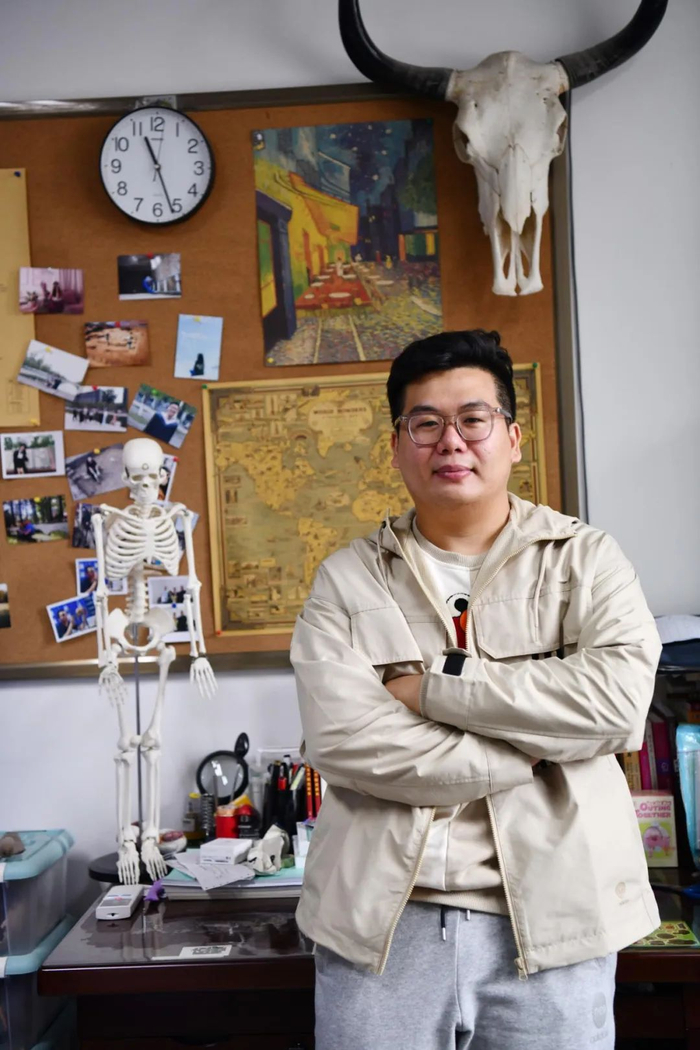 张帆正在观察一份人类骨骼样本。张浪 摄