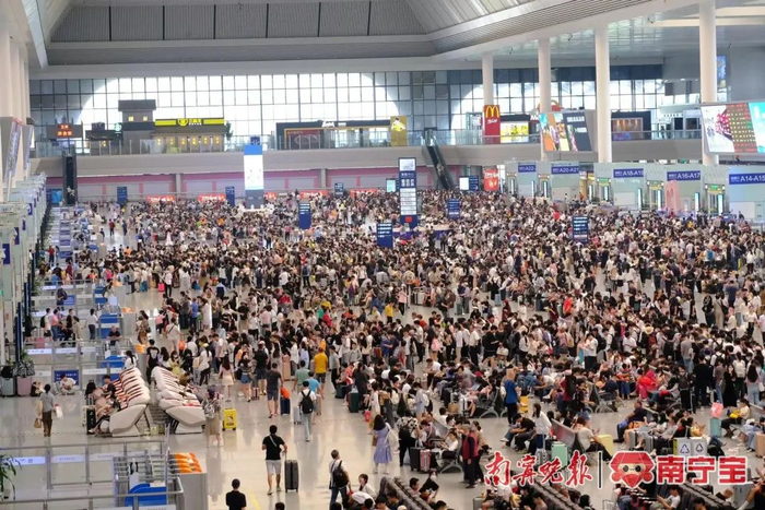 南宁东站候车大厅客流量明显增加,明日迎“三月三”客流高峰