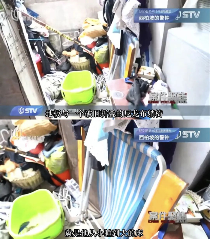小刘今年19岁,在家里至今都没有一张属于自己的床,每天只能睡在躺椅上。一家五口,挤在上海虹口区江湾街道的一室一厅里。