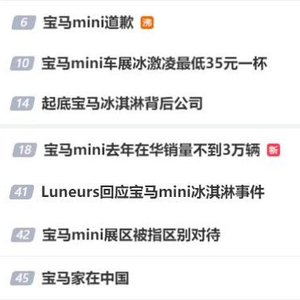 4月20日晚间,因为一杯冰激凌火了的宝马MINI占据了多个微博热搜。