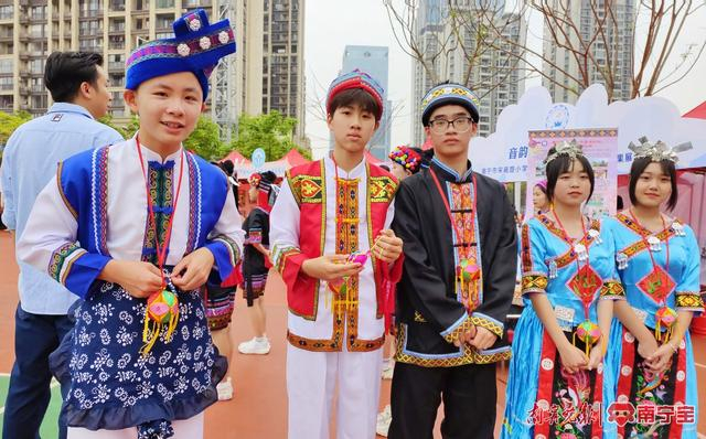 南宁市良庆区那陈初级中学的打油茶体验,南宁市衡阳路小学五象校区的打扁担擂壮鼓,南宁市良庆区第四实验幼儿园现场展示的制作艾条,南宁市秀田小学五象校区民族手工蜡染、陶艺作品展,宋厢路小学的排萧表演,南宁市体强路小学的润心纸术展,滨湖路小学五象校区的3D打印笔与壮族图案的创意美术与扎染,那黄小学的非遗乐器——天琴表演,玉洞小学的童谣团扇......民族文化教育成果展上,来自良庆区的26所学校上演了一场民族文化的视觉盛宴。