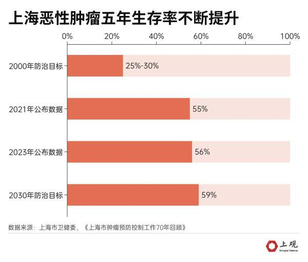 上海卫健委癌症监测在今年公布的最新数据显示,随着医疗条件的改善,早期筛查的推广,肿瘤防治的健康教育与健康促进,上海市癌症患病五年生存率已达到56%,在十多年里持续上升。