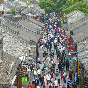 2023年4月19日,江苏扬州,游客在东关历史文化街区品尝风味小吃、选购非遗等地方特产。 本文图片均来自视觉中国