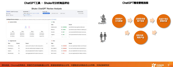 2)商家商品评论数据分析:ChatGPT接入后,商家可从购买动机、产品优势和缺陷、客户期望、使用场景、客户情况等方面对客户评价进行分析,可以帮助商家对自身产品和竞品有更准确的认知,从而制定有竞争力的销售战略。