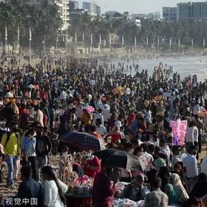 当地时间2022年1月9日,印度孟买,民众在海滩放松休闲。图源:视觉中国