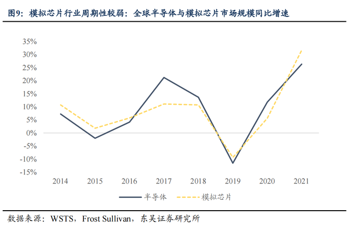 首先需要强调,作为半导体行业的分支,模拟芯片的行业周期跟随半导体周期变化;同时由于其产品生命周期长等特质,模拟芯片行业的周期性相对于半导体行业较弱。