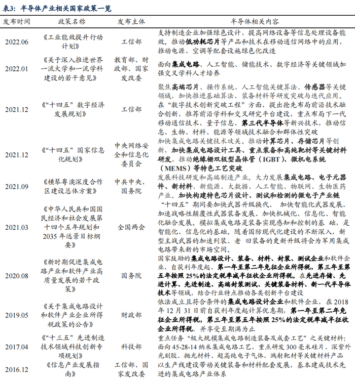 一方面,作为全球模拟芯片市场的主体,2022年中国模拟芯片市场占比高于50%,而国产自给率仅约14.5%,结合本土生产企业普遍使用Fabless生产模式的现状,中国模拟芯片产业面临供应链问题;另一方面,模拟芯片市场国产替代空间广,而短期内相关企业实现研究成果向产品大量转化的突破需要政策支持。作为半导体、集成电路的分支,半导体相关政策亦适用于模拟芯片。