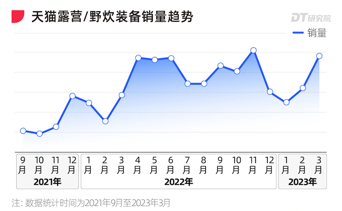 今年以来,尽管随着跨省游、出境游的复苏,市场上出现了“能旅游谁还花钱露营”的论调,但数据仍表明,露营正在随天气一起回暖,今年天猫38焕新周,天猫露营行业整体增长47%。