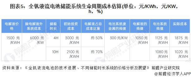 本文核心数据:不同储能时长全钒液流电池储能系统的价格、全钒液流电池储能系统生命周期成本估算