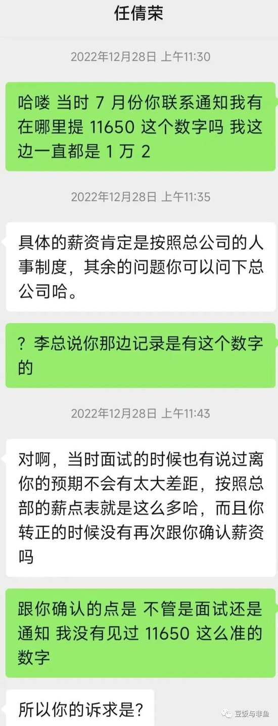 12、2023年4月4日(同天)下午,我联系了副董事长兼总经理肖瑶,反应了本次事情及可能与此次事情相关的一些事实、我被骗聘入职、不合理的被扣工资及没有享受相应的待遇的情况,他误解了事实,我做了解释,他没有再回复。