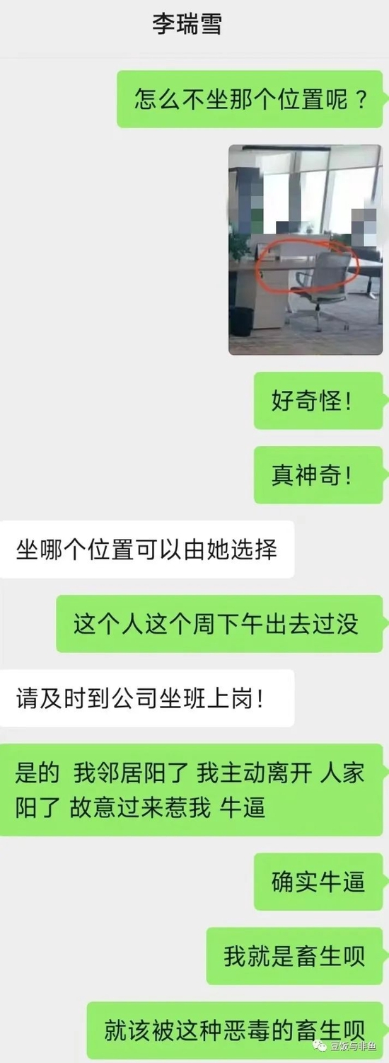 7、2023年3月10日,董秘李瑞雪、人事部长陈建国约我谈话30多分钟,董秘首先说了1234我不合适,但是没有具体事实依据,甚至在人事部长在场的情况下,谈话中重复对我进行了职场语言性骚扰,重复污蔑称我坐在男厕所门口办公,表情和笑声都很不入流,并且完全转变他之前会处理解决起因事件的态度。最终的谈话结果是,董秘李瑞雪对公司的诚信存在问题,人事部长陈建国向人事副总秦世哲等请示表态。