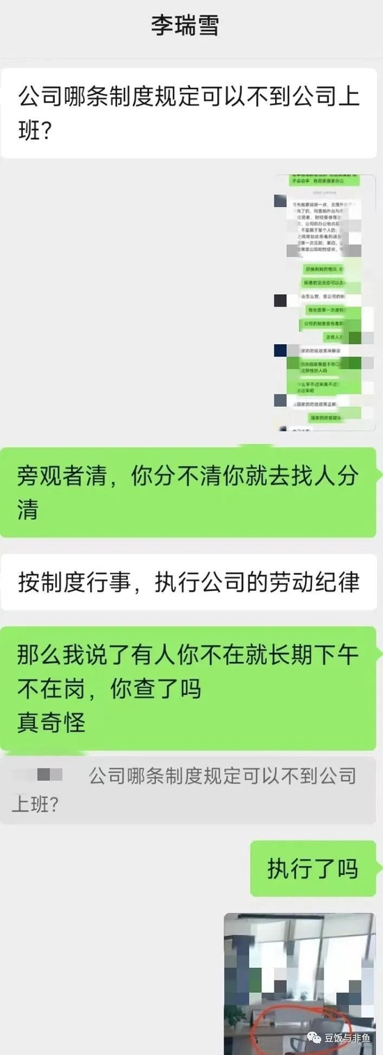 2、董秘李瑞雪是否具备岗位所必需的管理专业知识与技能?董秘李瑞雪的员工付出价值标准之一就是是否加班?同时他也说过,加班就是你该做的工作没有在正常时间内完成?是否矛盾?对于此次发生的整体事件,董秘李瑞雪是否真的有作为分管领导处理基本员工关系的能力和正确一致的态度立场?