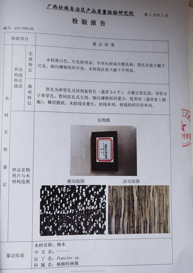 检验报告显示,送检材料中检出“杨木”。