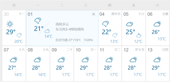 预测五一假期期间,全省天气以晴好为主。4月29日至5月3日全省大部分地区最高气温达29℃。总体看,假期期间天气条件利于公众出行。(天气预测仅供参考,最终以河南气象实际发布为准。)