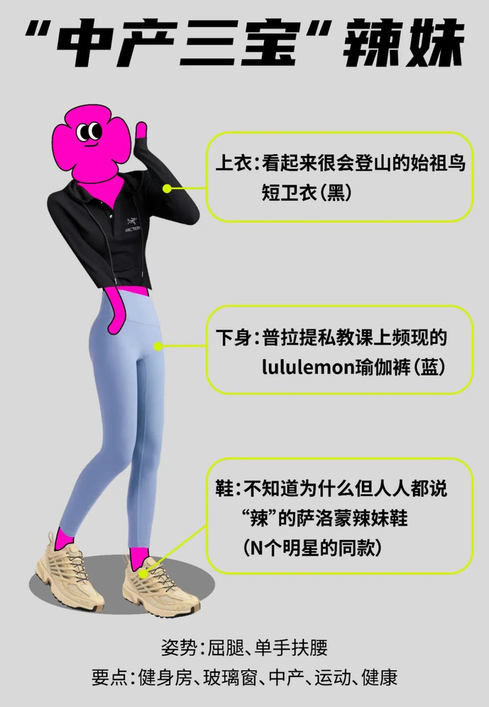 虽说Nike官方并没有将其与“女团”联系起来,但不妨碍博主们买回家自行搭配,赋予其新title。与之相同的还有“中产三宝”之一的始祖鸟卫衣,本来便于户外运动的紧身卫衣,因为款式偏短,提高臀线凸显身材,也被搭配上短裙纳入了“辣妹衣柜清单”。