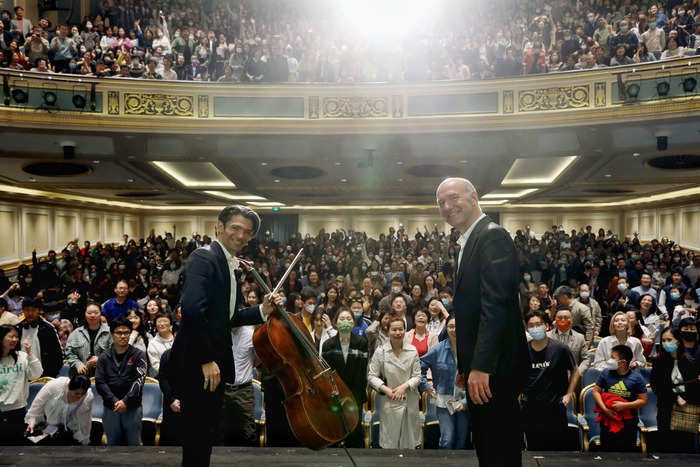 这一晚,“乐”色撩人。卡普松怀抱一把闪着幽光的大提琴,献上贝多芬、舒曼、勃拉姆斯等古典、浪漫时期的德奥之声。被现场绵延不断的热情包围,他又返场加演圣-桑《天鹅》、马斯奈《沉思曲》,意犹未尽的观众掌声不停,他只能软声安抚,“剩下的曲目属于明晚,不能再演了!”一张大合影,定格了在场所有人的笑颜。