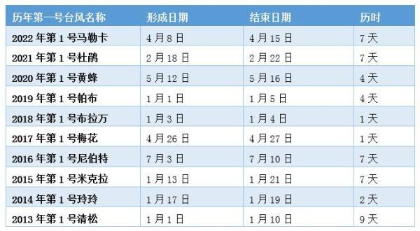 (近10年第1号台风生成情况)