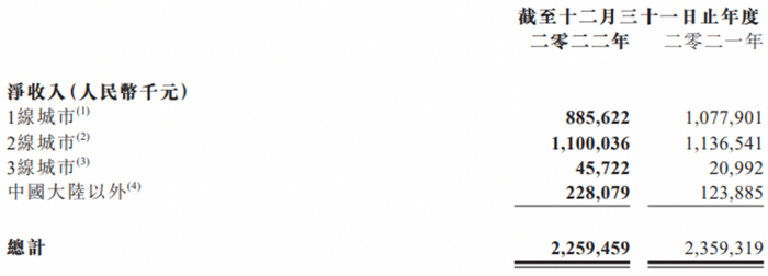 2022年呷哺呷哺餐厅按地区划分净收入情况(千元)