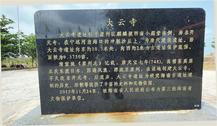 位于崖州区大蛋村的大云寺遗址,于2015年11月成为“海南省文物保护单位”。