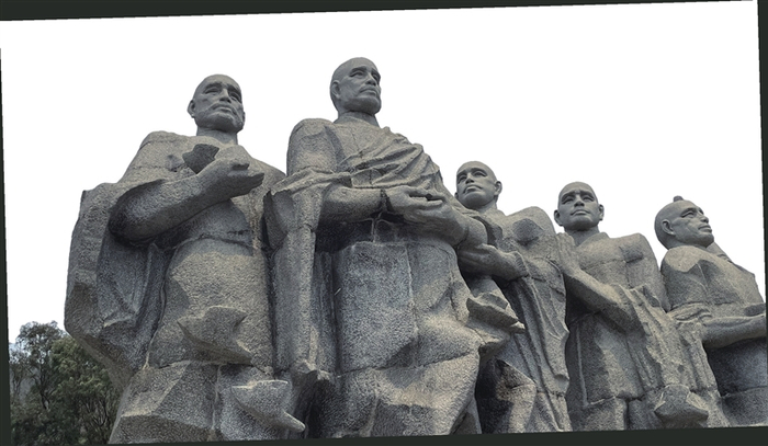 三亚大小洞天旅游区内的“鉴真登岸”群雕,左二为鉴真,其作者为海南乐东籍雕塑家林毓豪。