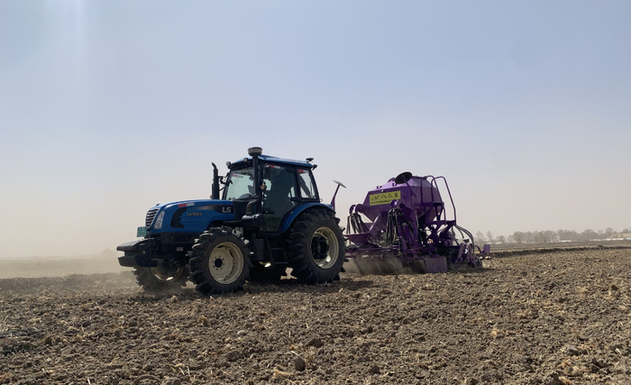 谷雨时节春耕忙。4月20日,在黑龙江省齐齐哈尔市龙沙区明星村,一台酷似八爪鱼的气动式谷物条播机正在高速作业。在今年的水稻种植方式上,明星村改用水稻覆土旱直播技术,耕地、施肥、播种同步完成,节省人力的同时大幅降低了种植成本。