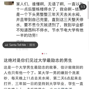 近日,有网友发帖称,西安科技大学一男生因宿舍在水房旁边,嫌晚上洗漱声太吵,每天晚上11点准时关水阀,早上6点准时开水阀,坚持了3年。