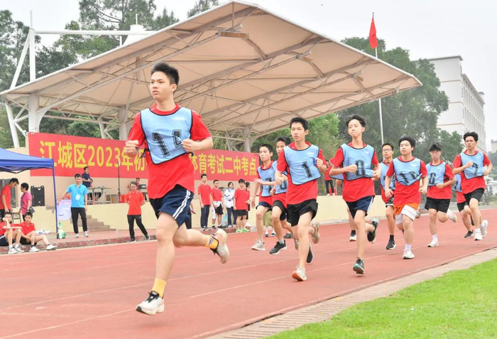 据悉,各县(市、区)体育中考开考时间不同,江城区体育中考于4月18日开考,将持续至5月6日,缓考时间另行安排。今年,江城区设市实验学校、阳江二中共2个考点,共有8300多名学生参加考试。体育考试成绩满分为 100 分,仍然按占中考录取总分的 8%计入中考考试成绩。