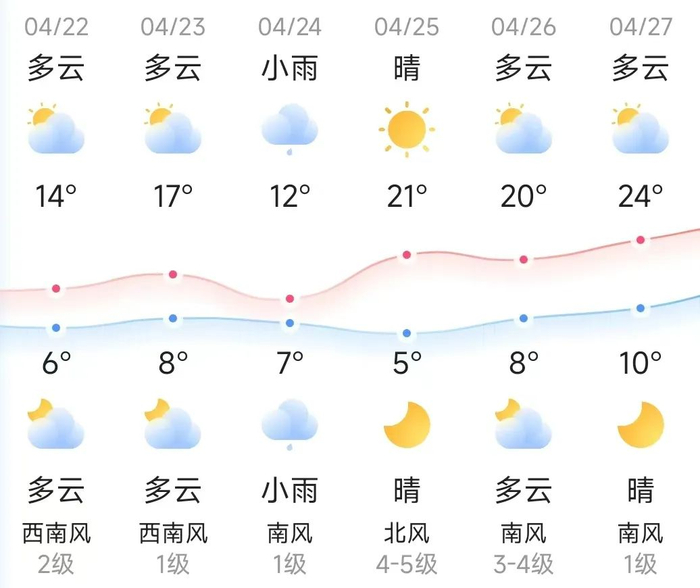 星期六,今日多云,气温6~14℃