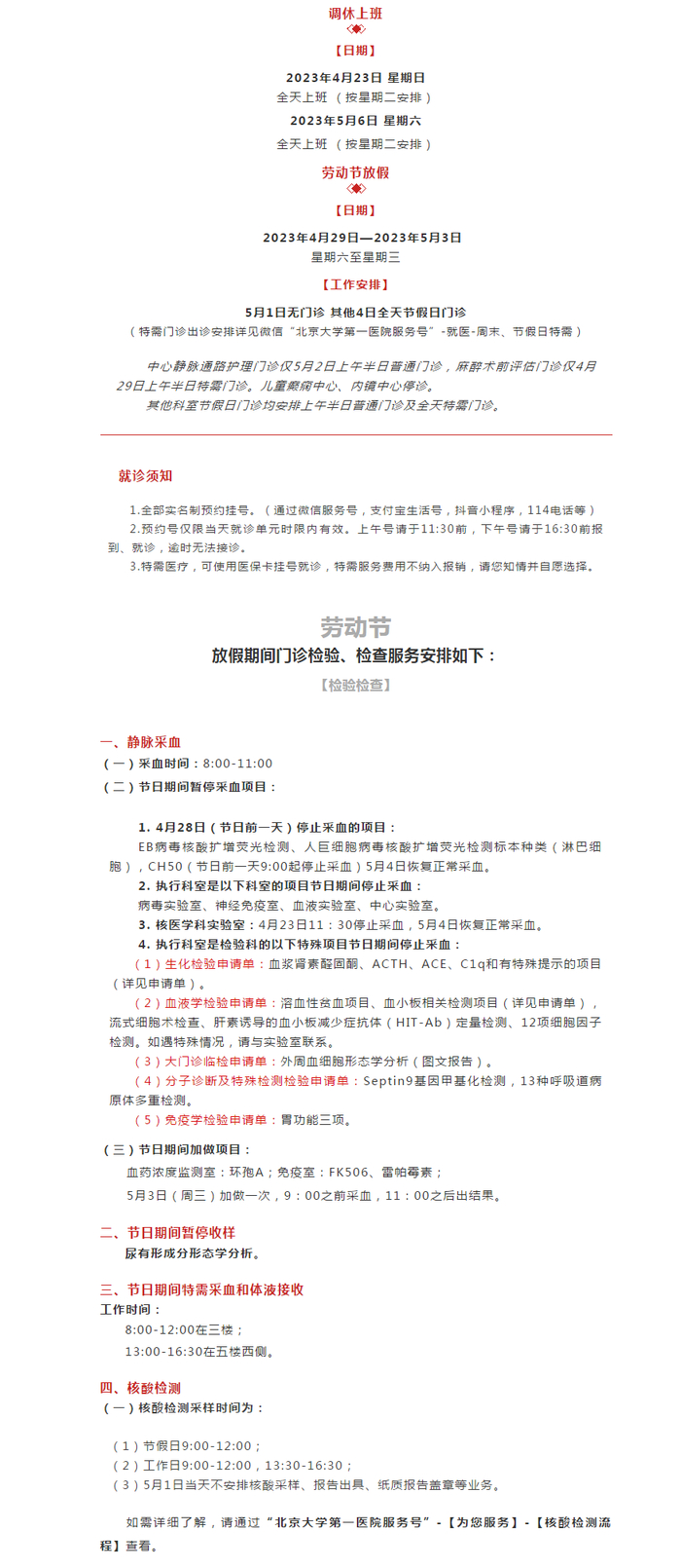 (一)2023年5月1日上午半日门诊。