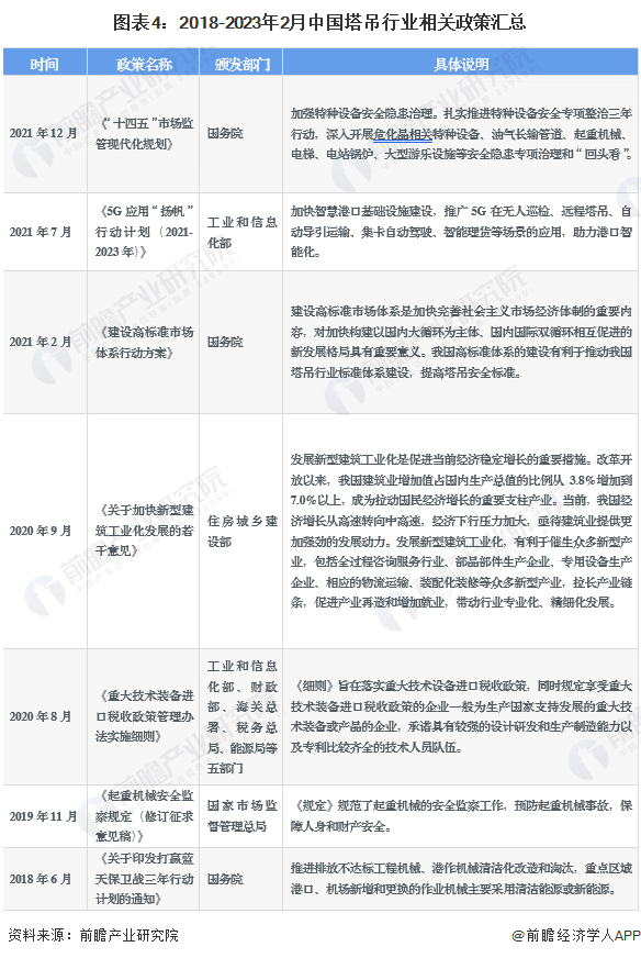 我国专门针对塔吊行业的相关政策较少,因此塔吊行业相关政策一般依托于工程机械行业。