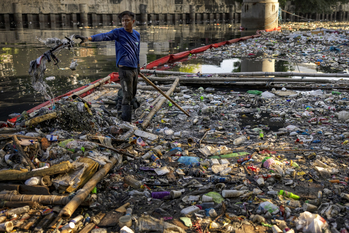 当地时间2023年4月20日,菲律宾马尼拉,一名“河流战士”在圣胡安河收集塑料垃圾。据报道,跨国公司诱骗菲律宾等发展中国家的低收入消费者购买,而且经常购买小批量的、使用廉价一次性塑料包装的快速消费品,以此作为提高市场份额和利润的战略的一部分。环保组织Break Free From Plastic的《2022年品牌审计报告》显示,可口可乐公司、菲利普·莫里斯国际公司、环球罗宾娜公司、菲律宾矿泉水资源公司和日本烟草公司是该国最严重的塑料污染者。