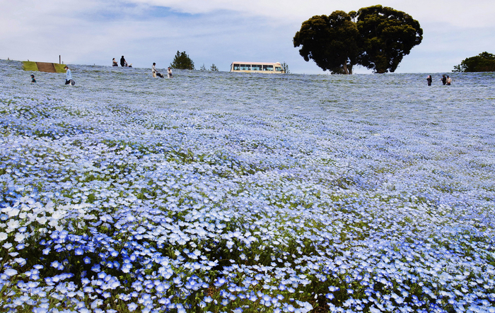 日本多地花园粉蝶花绽放,游客徜徉纯净蓝色花海