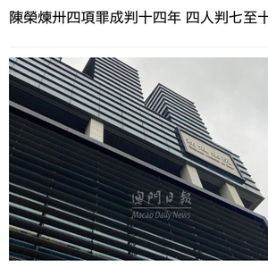 4月21日,据《澳门日报》报道称,澳门特区初级法院今日宣判“德晋贵宾会”涉不法赌博案,原被控83项罪名的陈荣炼,最终法院判处其包括不法经营赌博罪、巨额诈骗罪、黑社会罪等34项罪名成立,数罪并罚,合共监禁14年,其中单一项黑社会罪即被判处10年。