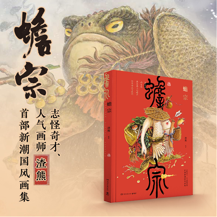 本期将要推荐给大家的是志怪奇才、人气画师渣熊首部新潮国风画集《蟾宗》。《蟾宗》是渣熊首部新潮国风画集,收录代表作近80幅,包括《悲天鹅》《禅蟾馋》《蟾王渡海摸金图》《护法蟾王》《白泽驮子图》《财神来探头》《猫观音》《夜班之神》《传道图》《犬五虐》《醉酒喝风》《鹰熊斗志图》《鸡中之霸》《沽上走蛟》《蟾王娶亲》等。