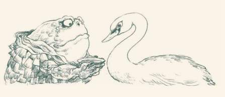 在众多怪灵邪兽中,渣熊尤其喜欢画蟾蜍、蜥蜴等爬行动物。他笔下的蟾蜍画作题材别具一格,为人耻笑的“癞蛤蟆想吃天鹅肉”的故事,在渣熊的画中别有一番悲怆柔情,谁说癞蛤蟆就不能一腔情深呢?