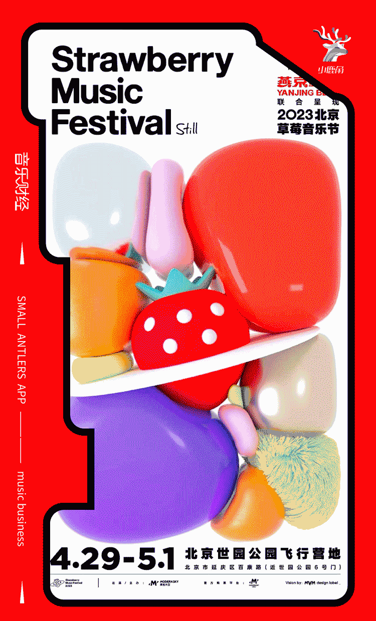 2022年末,摩登天空发布了2023年草莓音乐节的年度主题——“Still”,仍然,以此表达在新的一年里,草莓将依然为乐迷创造一些激动的、温暖的和动人的时刻。截至发稿,今年已完整官宣举办的草莓音乐节有10场草莓,接下来还将进入新疆乌鲁木齐落地举办,这是摩登天空第一次为新疆乐迷带来“草莓味”的现场体验。