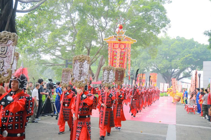 开库之际,4名酒庄师傅高抬北帝神舆进场,举行“祭祀北帝仪式”。北帝在岭南地区被奉为“水神”和地方保护神,而酒就是“水”态,按照民俗好酒就是北帝恩赐之一,备受岭南酿酒人尊崇和信仰,当天北帝出巡和监督陈太吉酒庄酒出库,寓意陈太吉酒庄酒天酿既成,赐予民间分享。