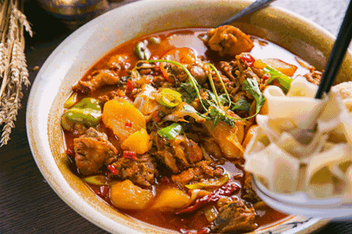 有爽滑麻辣的鸡肉和软糯甜润的土豆