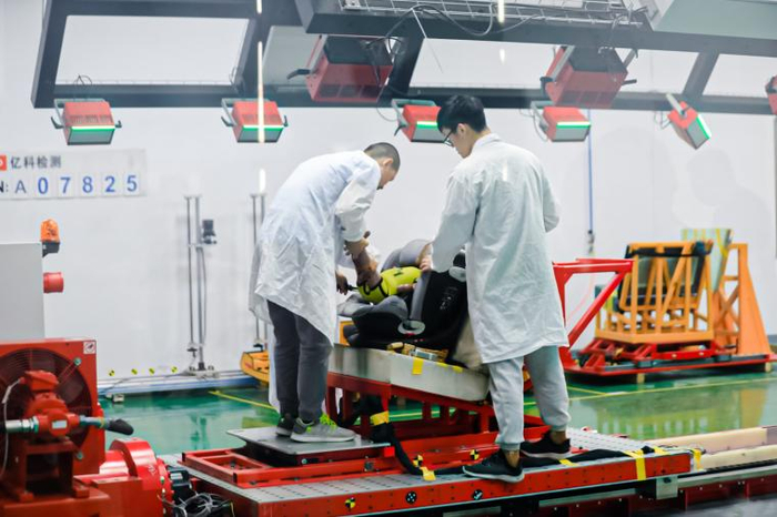 发布会当天,好孩子邀请了来自全国各地的“较真妈妈团”零距离探厂,深度探察6大场地,实地体验83种工种测试、汽车实验室安全座椅撞击测试、55项化学检测、物理检测、纺织品测试,等等项目