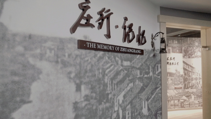 “一座东兴楼,半部庄行史”,展馆内惟妙惟肖的人物塑像引领我们走进这家百年茶楼,感受庄行老街繁荣的茶文化。花米行指的是经营棉花与米的商行,明洪武初,庄氏人家迁入,在八字桥头开设了一家花米行,因主人善待客人、商行生意兴隆,近百姓将上集镇习惯说成“到庄家行去”,“庄行”由此得名。