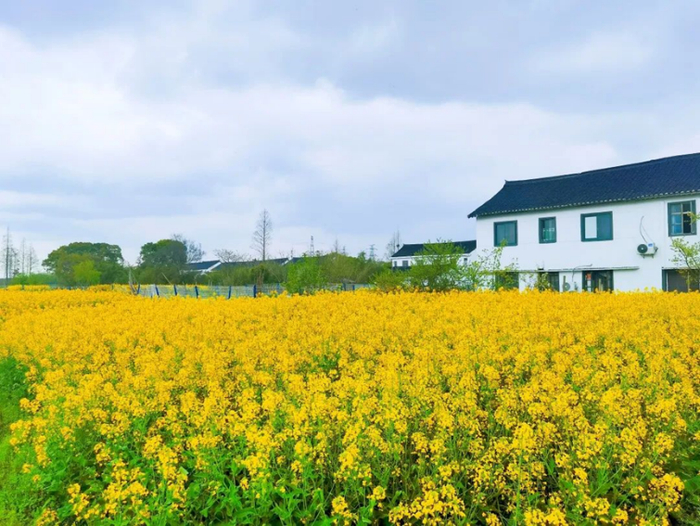 在庄行油菜花田踏青赏花,可以融入繁花盛景,在乡村的气息中感受春天的美好。田园茶吧、春趣乐园、大地艺术、花田小品,美丽的景色数不胜数,置身金色花海中可寻得一处独享的“桃花源”。
