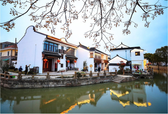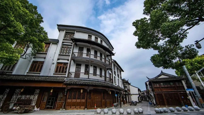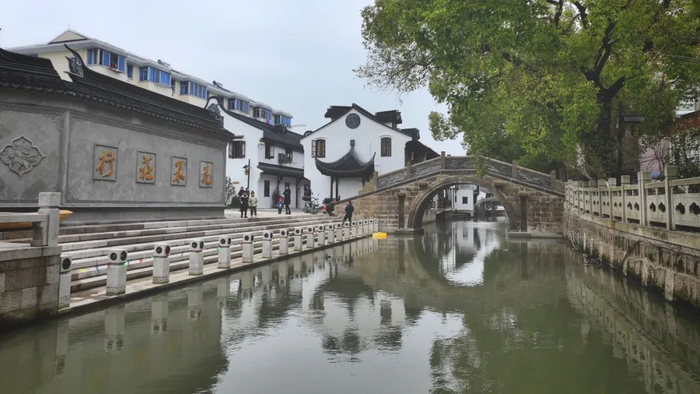 老街两旁民居、商铺、宅院合理分布,门、窗、屋檐、栏杆雕花精致、彰显江南文化的艺术灵气。街旁的南桥塘开挖于明代嘉靖年间,时人誉为“人家尽枕河,楼台俯舟楫”,临河而居的江南特色老街保存完整,“一街、四水、五古、十一弄”的整体格局保存至今,形成古街巷、古桥梁、古建筑、古河道、古商铺的特色格局。