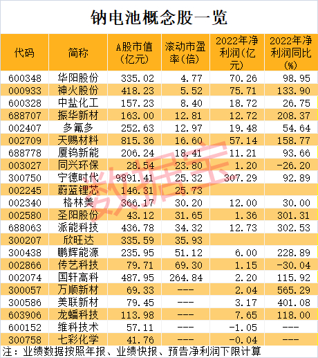 两大新能源巨头大动作,钠电池年内将“上车”!这些概念股业绩报喜,市盈率最低不到5倍